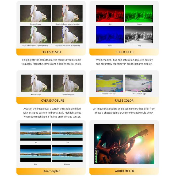 4. Focus Assist(Red, Green, Blue), you can adjust the peaking level after turning on 1-10