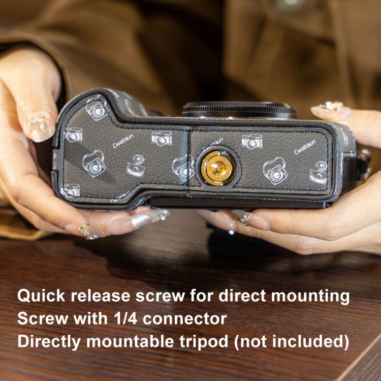 For FUJIFILM X-T5 Cwatcun D161 Vintage Camera Stand Camera Protective Leather Case(Black)