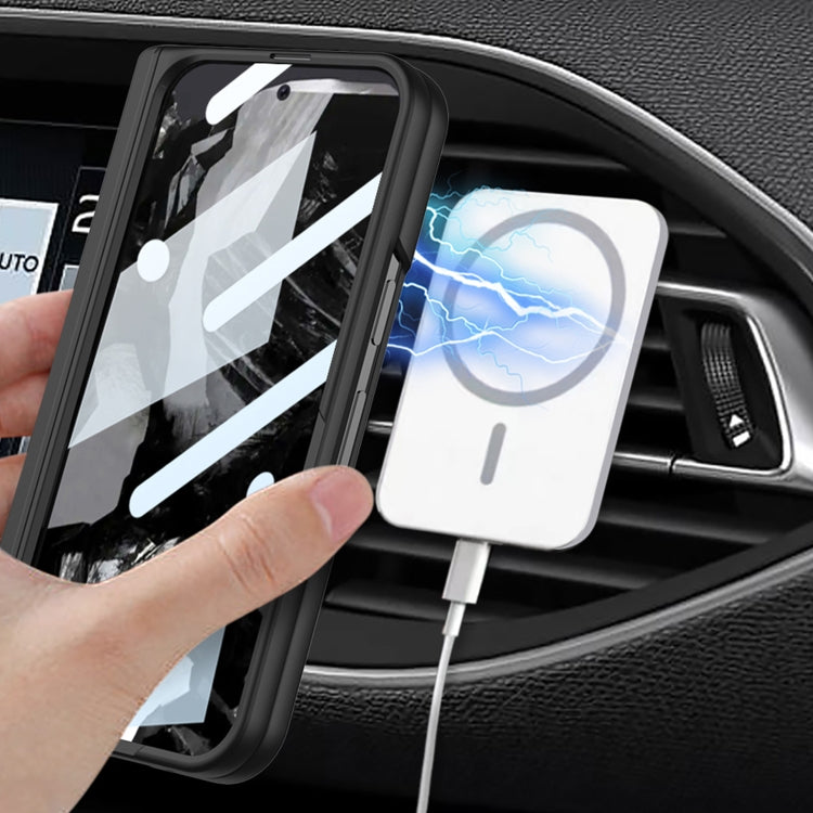 For Google Pixel 9 Pro Fold GKK Integrated Magsafe Fold Hinge Full Coverage Phone Case with Holder(White)