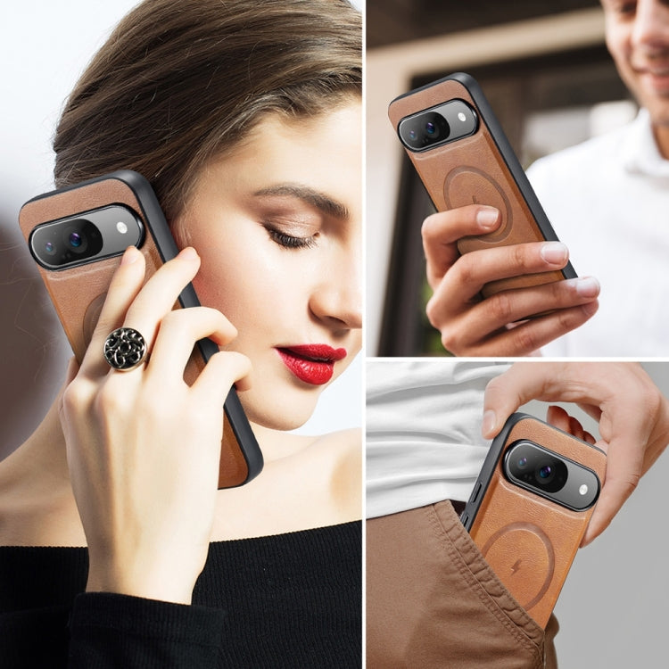 For Google Pixel 9 Pro XL Fierre Shann Cowhide Texture MagSafe Magnetic Phone Case(Brown)