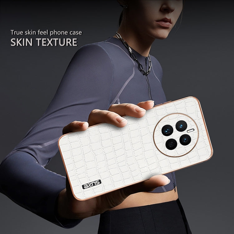 For Huawei Mate 50 / 50E AZNS Electroplated Frame Crocodile Texture Full Coverage Phone Case(Brown)