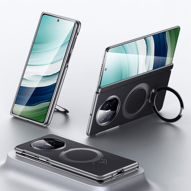 For Huawei Mate X5 / X3 SULADA Top Grain Leather MagSafe Magnetic Holder Phone Case(Black)