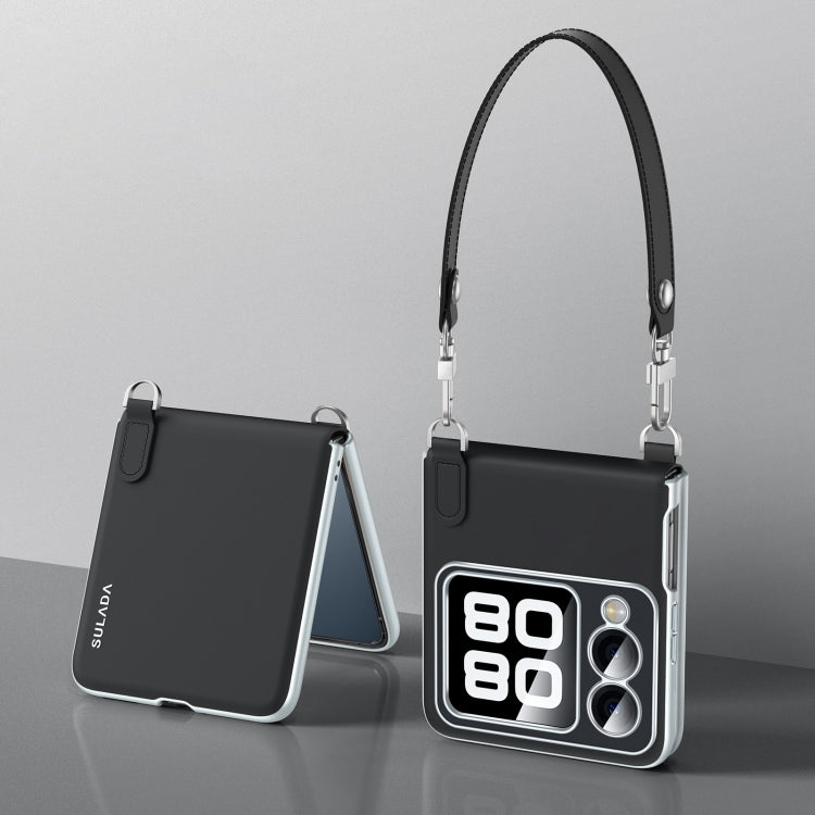 For Huawei nova Flip SULADA Skin Feel Liquid Leather Phone Case with Strap(Black)