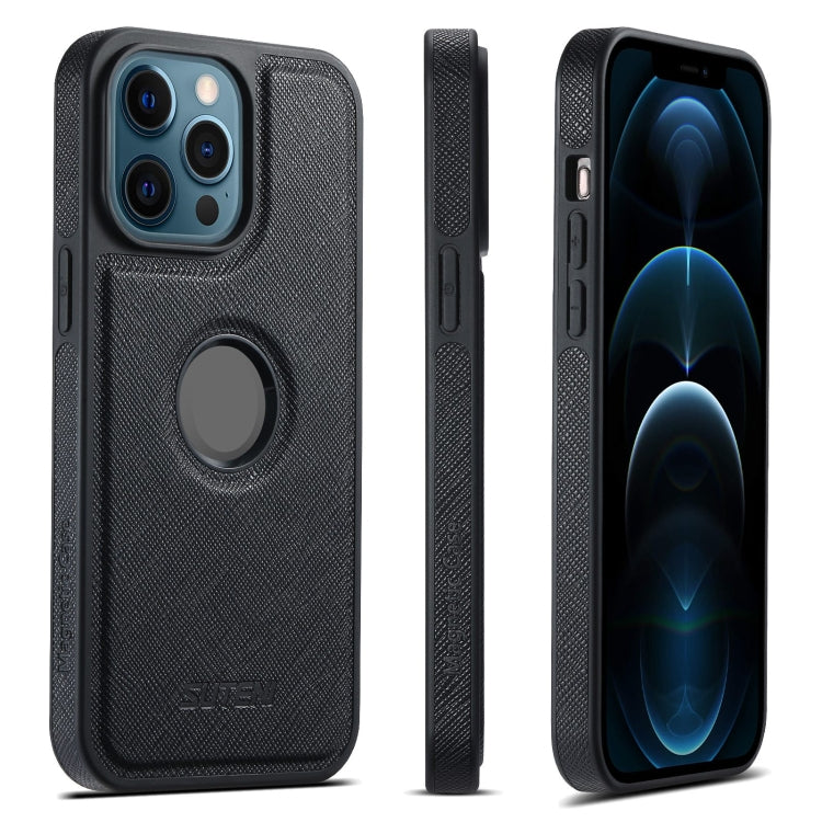 For iPhone 12 Pro Max Suteni G1 Cross Texture MagSafe Phone Case(Black)