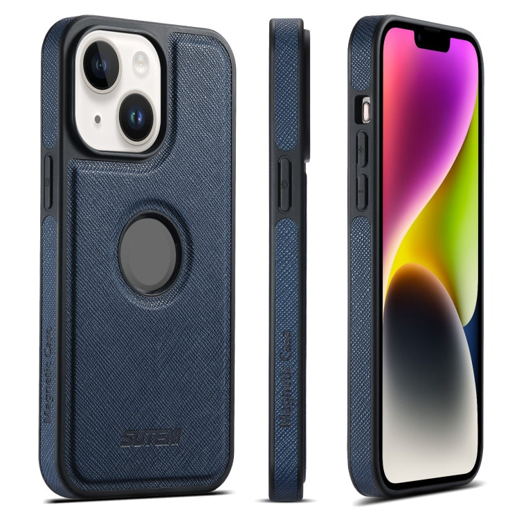 For iPhone 14 Plus Suteni G1 Cross Texture MagSafe Phone Case(Blue)