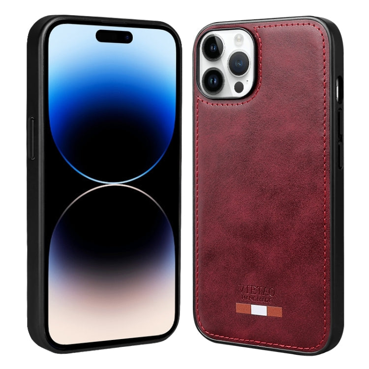 For iPhone 14 Pro Max VIETAO Plain Leather Stitching PU Phone Case(Red)