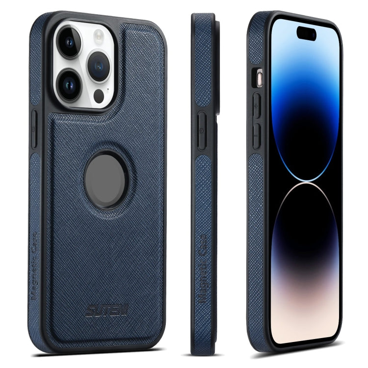 For iPhone 14 Pro Suteni G1 Cross Texture MagSafe Phone Case(Blue)