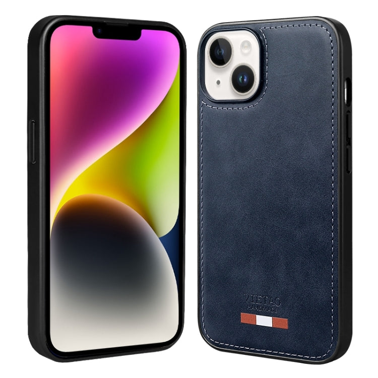 For iPhone 14 VIETAO Plain Leather Stitching PU Phone Case(Blue)