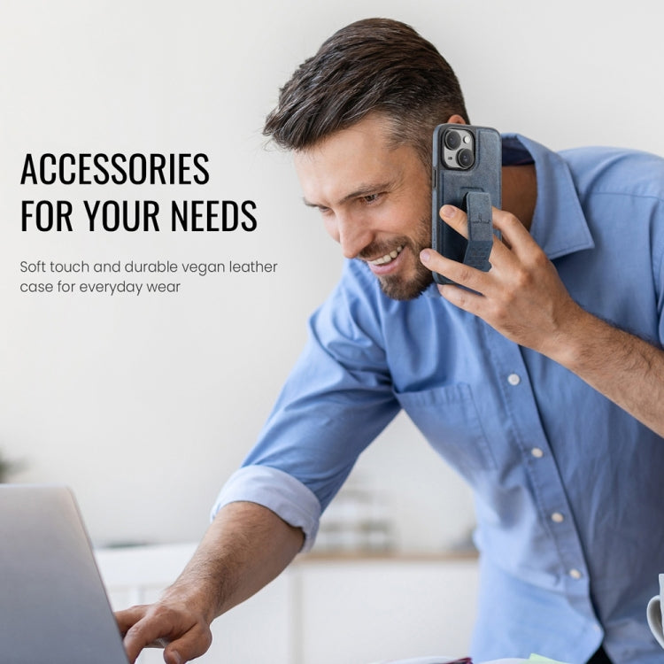 For iPhone 15 Fierre Shann Oil Wax Cow Leather Holder Back Phone Case(Blue)