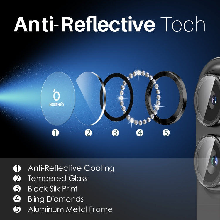For iPhone 16 / 16 Plus NORTHJO Rhinestone Camera Lens Protector Tempered Glass Metal Ring Film(Graphite)