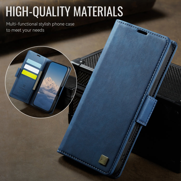 For iPhone 16 AutSpace A11 Side Buckle MagSafe Magnetic RFID Phone Leather Case(Blue)