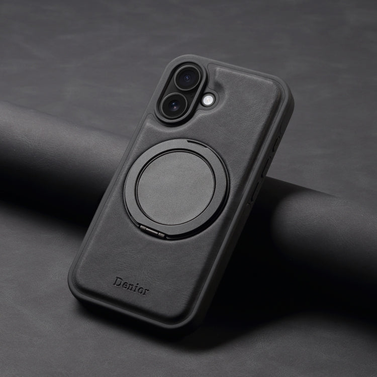 For iPhone 16 Denior A14 Skin Feel Rotating Holder MagSafe Phone Case(Black)