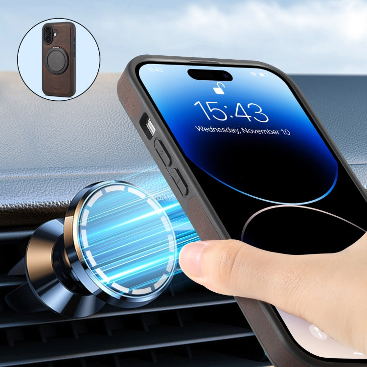 For iPhone 16 Denior A14 Skin Feel Rotating Holder MagSafe Phone Case(Brown)