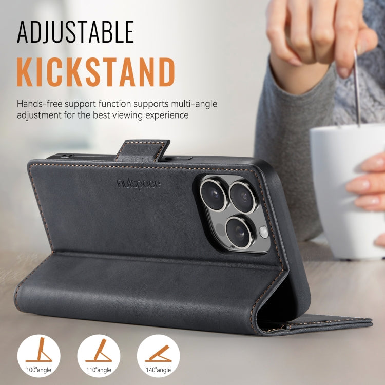 For iPhone 16 Pro Max AutSpace A11 Side Buckle MagSafe Magnetic RFID Phone Leather Case(Black)