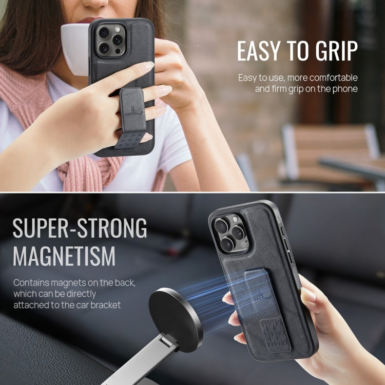 For iPhone 16 Pro Max Fierre Shann Oil Wax Cow Leather Holder Back Phone Case(Black)