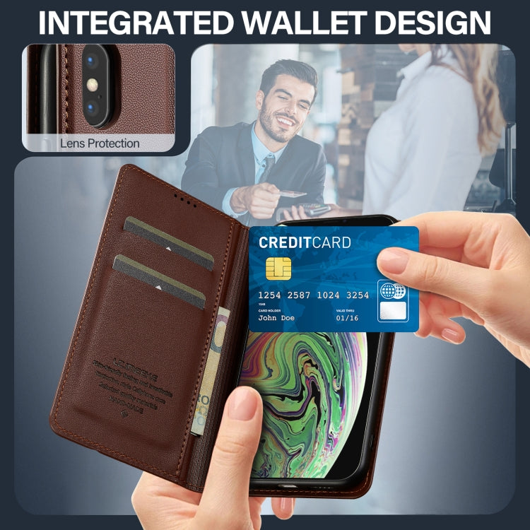 For iPhone XR LC.IMEEKE L1 Series Frosted Fine Texture PU Phone Case(Brown)