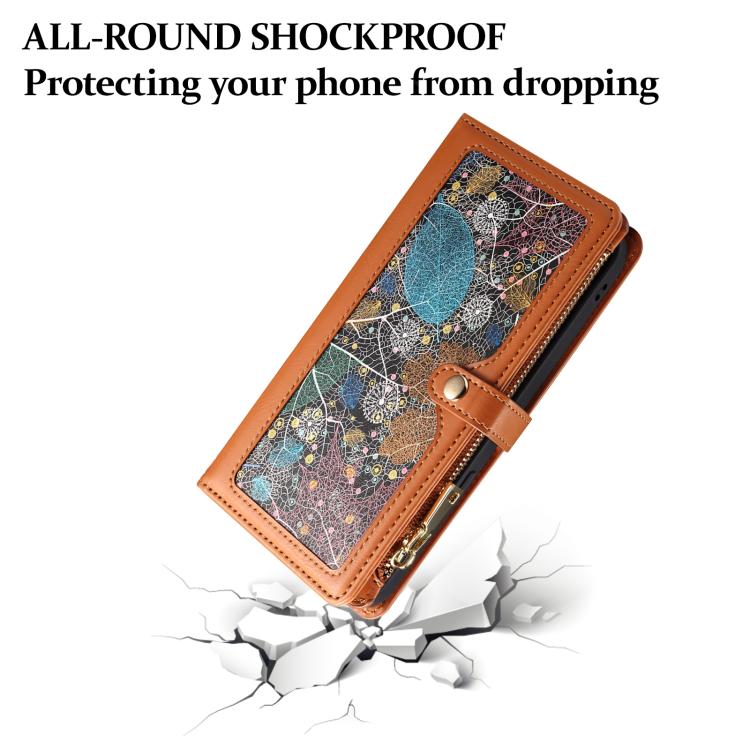 For Motorola Moto G15 ESEBLE Star Series Lanyard Zipper Wallet RFID Leather Case(Brown)