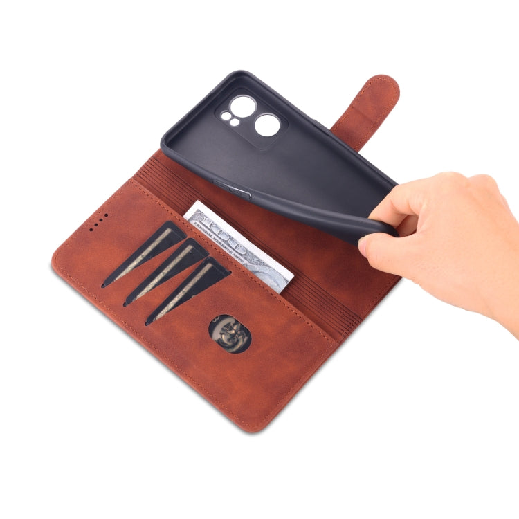 For OPPO Reno7 Global AZNS Skin Feel Calf Texture Flip Leather Phone Case(Brown)