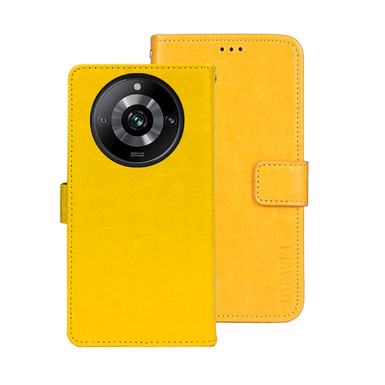 For Realme 11 Pro idewei Crazy Horse Texture Leather Phone Case with Holder(Yellow)