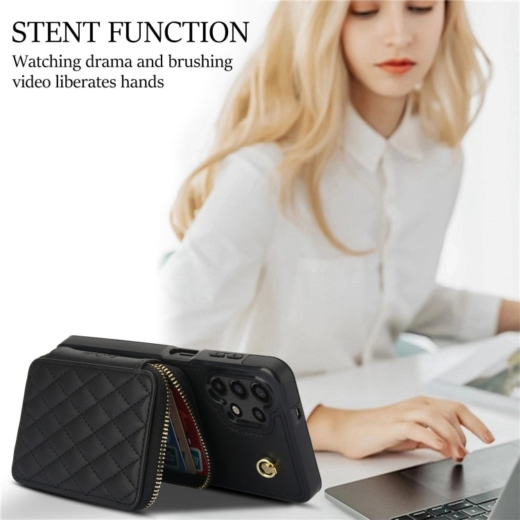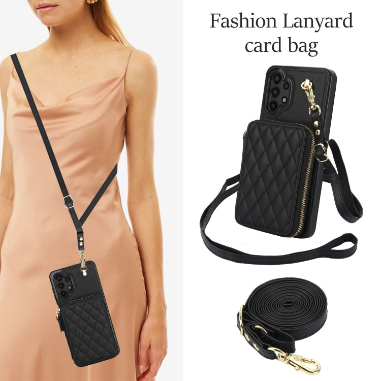 For Samsung Galaxy A13 4G / 5G AwQuer Crossbody Zipper Wallet Rhombic Leather Back Phone Case(Black)