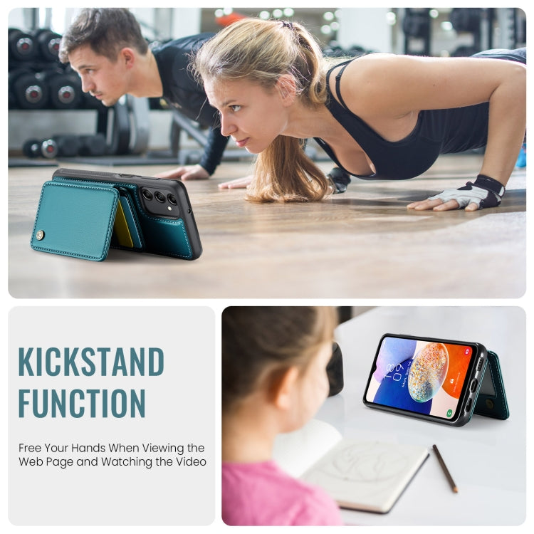 For Samsung Galaxy A14 4G / 5G JEEHOOD J05 Business Magnetic Style RFID Leather Phone Case(Blue Green)