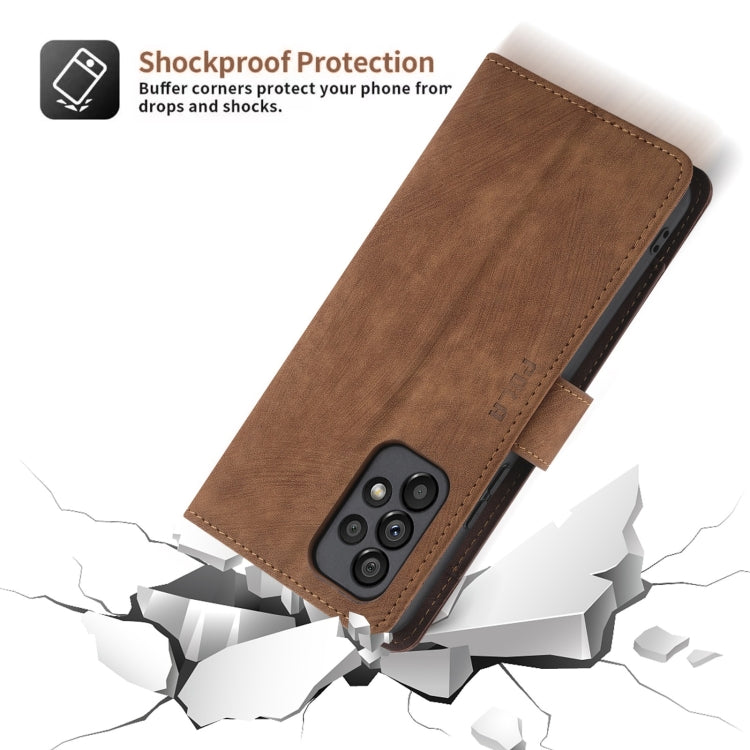 For Samsung Galaxy A53 POLA Dual-color Zipper Wallet RFID Leather Phone Case(Burgundy Brown)