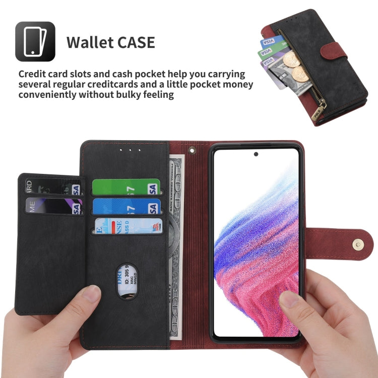 For Samsung Galaxy A53 POLA Dual-color Zipper Wallet RFID Leather Phone Case(Red Black)
