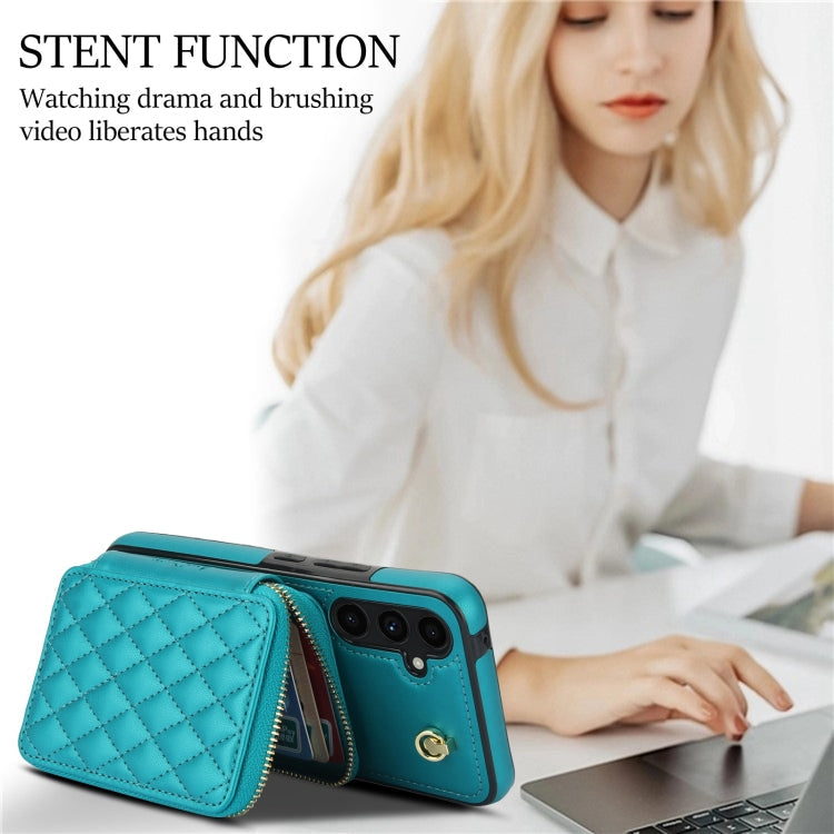 For Samsung Galaxy A54 4G / 5G AwQuer Crossbody Zipper Wallet Rhombic Leather Back Phone Case(Green)