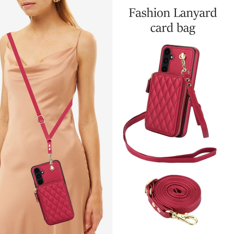 For Samsung Galaxy A54 4G / 5G AwQuer Crossbody Zipper Wallet Rhombic Leather Back Phone Case(Red)