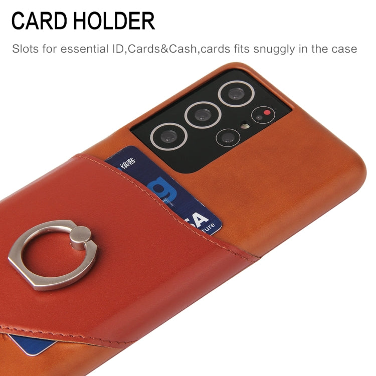 For Samsung Galaxy S21+ 5G Fierre Shann Oil Wax Texture Genuine Leather Back Cover Case with 360 Degree Rotation Holder & Card Slot(Brown)