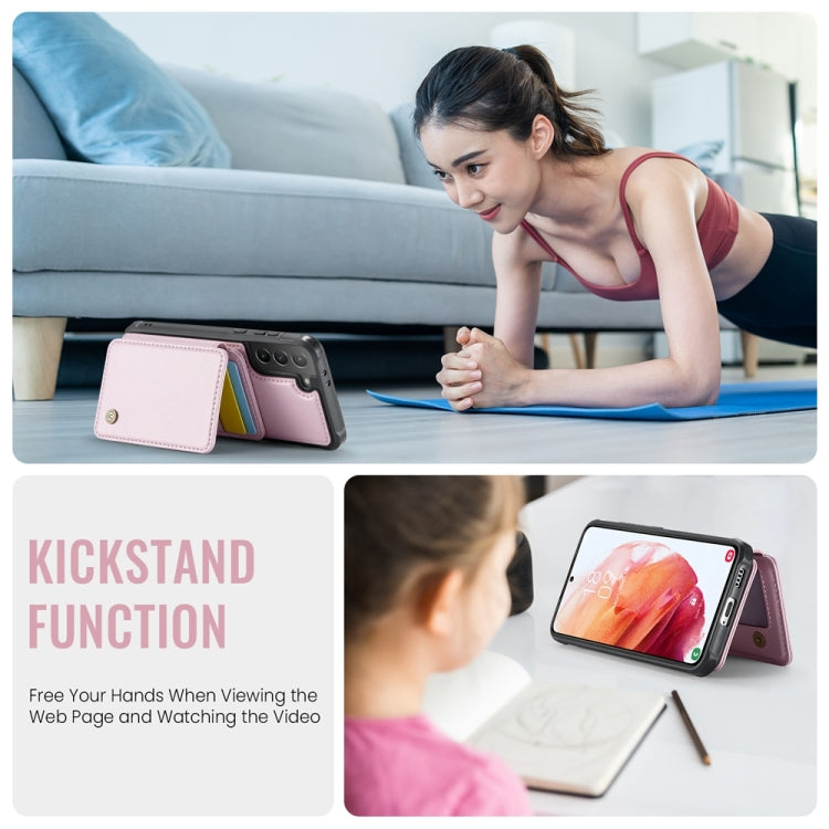 For Samsung Galaxy S21+ 5G JEEHOOD J05 Business Magnetic Style RFID Leather Phone Case(Pink)