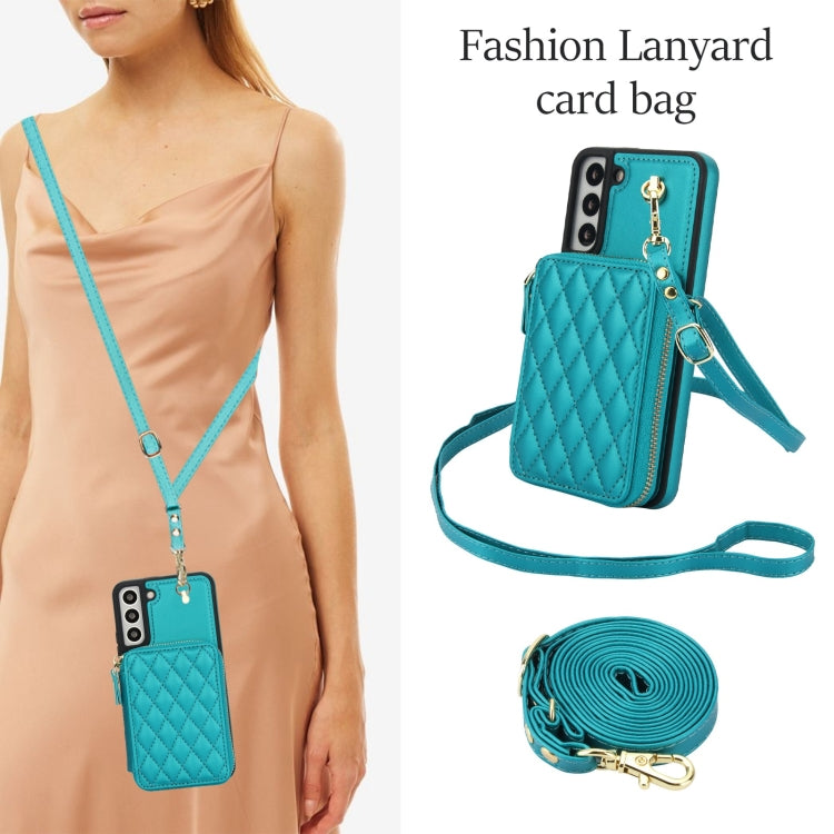 For Samsung Galaxy S22+ 5G AwQuer Crossbody Zipper Wallet Rhombic Leather Back Phone Case(Green)