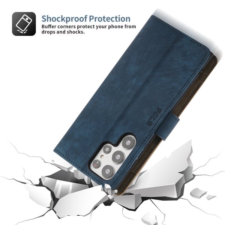 For Samsung Galaxy S22 Ultra 5G POLA Dual-color Zipper Wallet RFID Leather Phone Case(Yellow Blue)