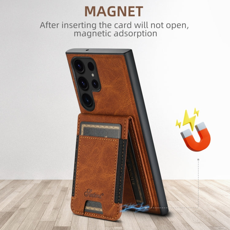 For Samsung Galaxy S23+ 5G Suteni H17 Litchi Texture Leather MagSafe Detachable Wallet Phone Case(Khaki)
