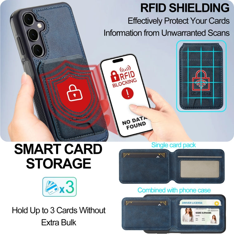 For Samsung Galaxy S23 FE 5G LC.IMEEKE L3 Series Detachable RFID Card Bag Magsafe Phone Case(Blue)