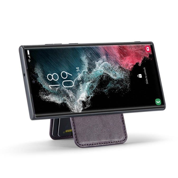 For Samsung Galaxy S23 Ultra 5G Fierre Shann Cowhide Vertical Flip Magnetic Card Holder Phone Case(Purple)