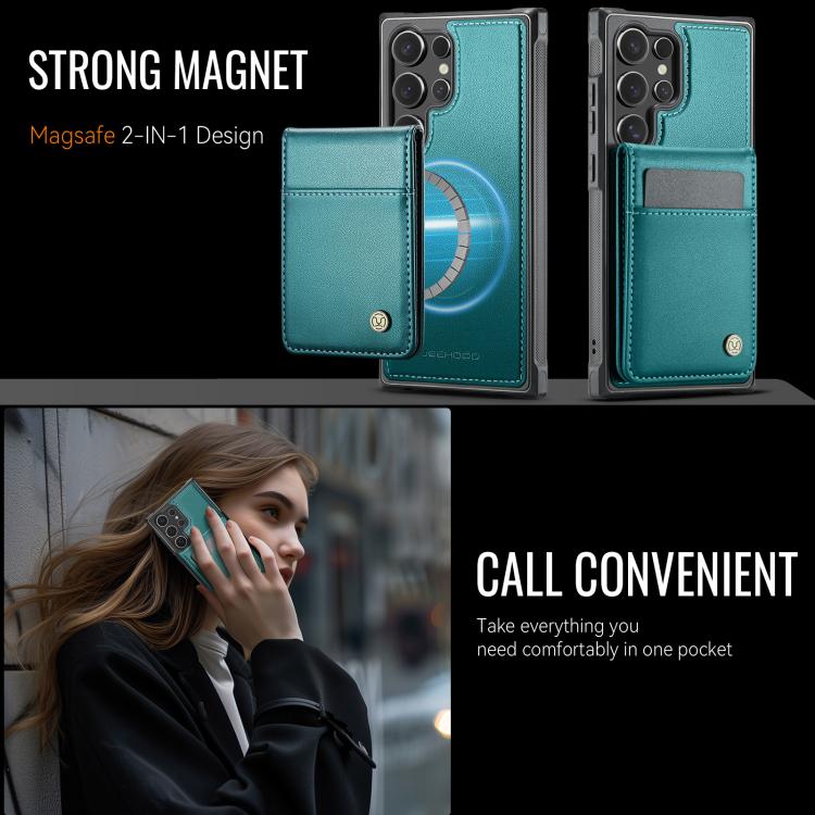 For Samsung Galaxy S23 Ultra 5G JEEHOOD J06 British Style RFID MagSafe Card Bag PU Phone Case(Green)