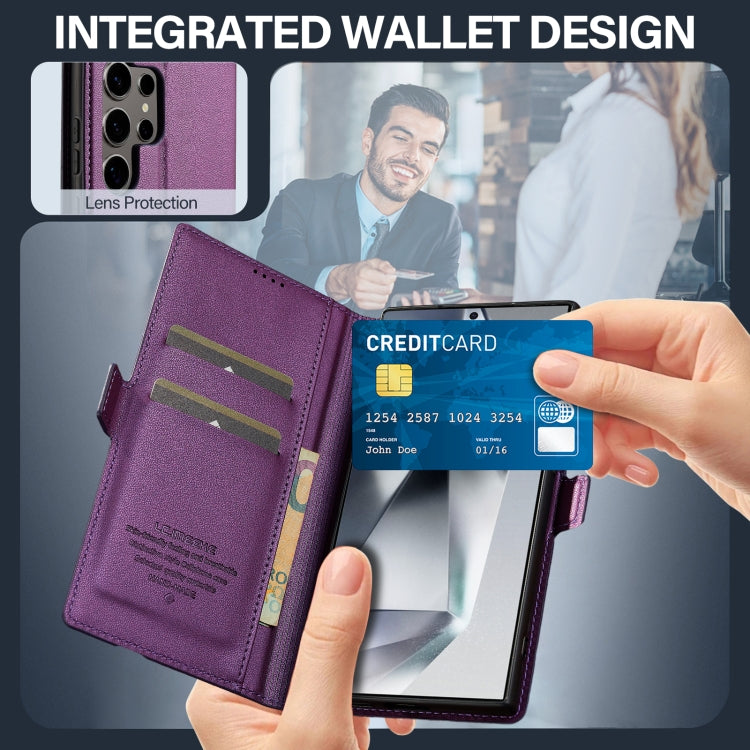 For Samsung Galaxy S23 Ultra 5G LC.IMEEKE L1 Series Frosted Fine Texture PU Phone Case(Purple)