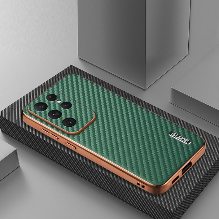 For Samsung Galaxy S25 Ultra 5G AZNS Electroplated Edge Carbon Fiber Texture Phone Case(Green)