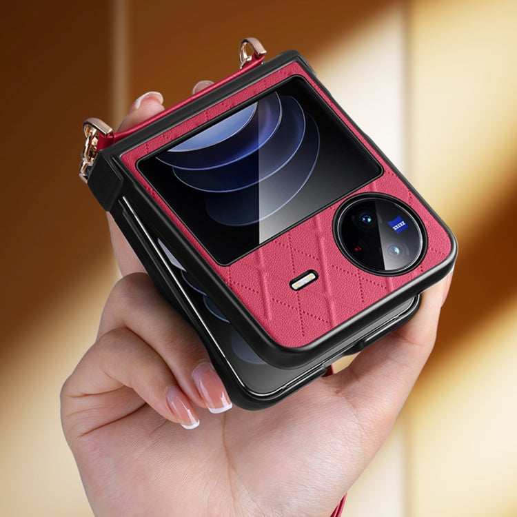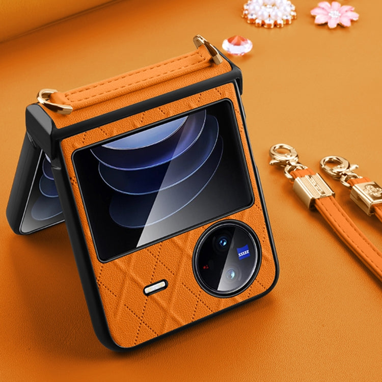 For vivo X Flip SULADA Elegant Rhombic Texture Folding Phone Case with Lanyard(White)