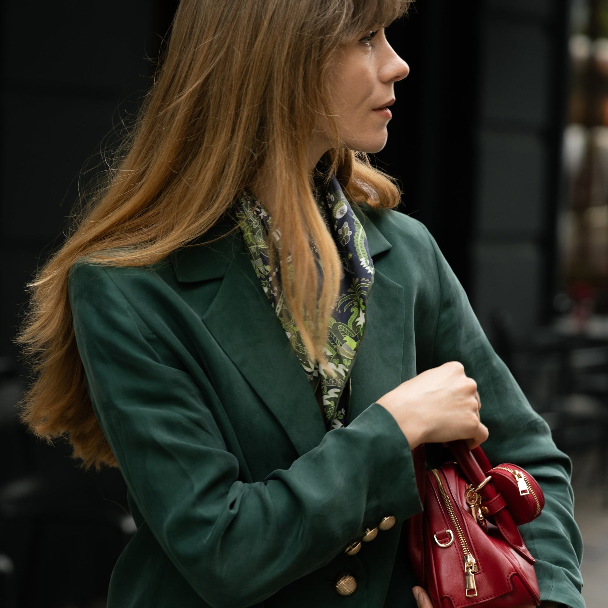 This lightweight and breathable scarf is an ideal choice for year-round styling. Its compact size makes it perfect for tying around the neck, accessorizing the wrist, or adding a pop of luxury to your handbag or jacket pocket.