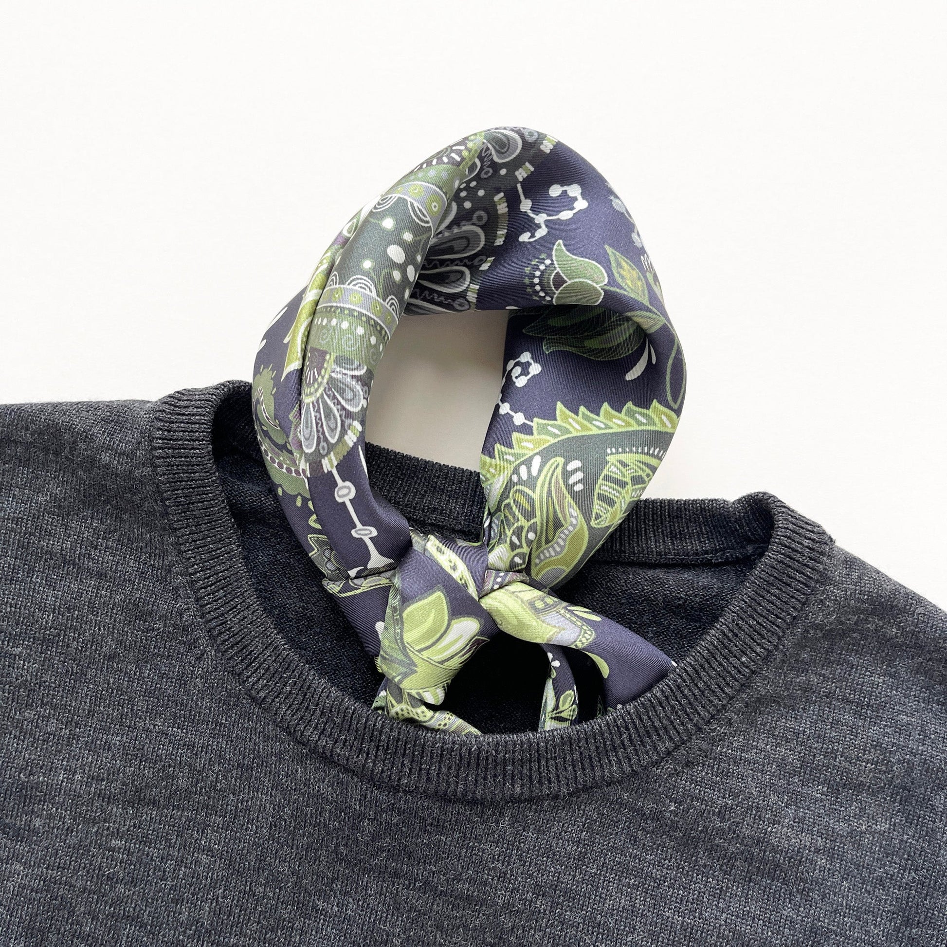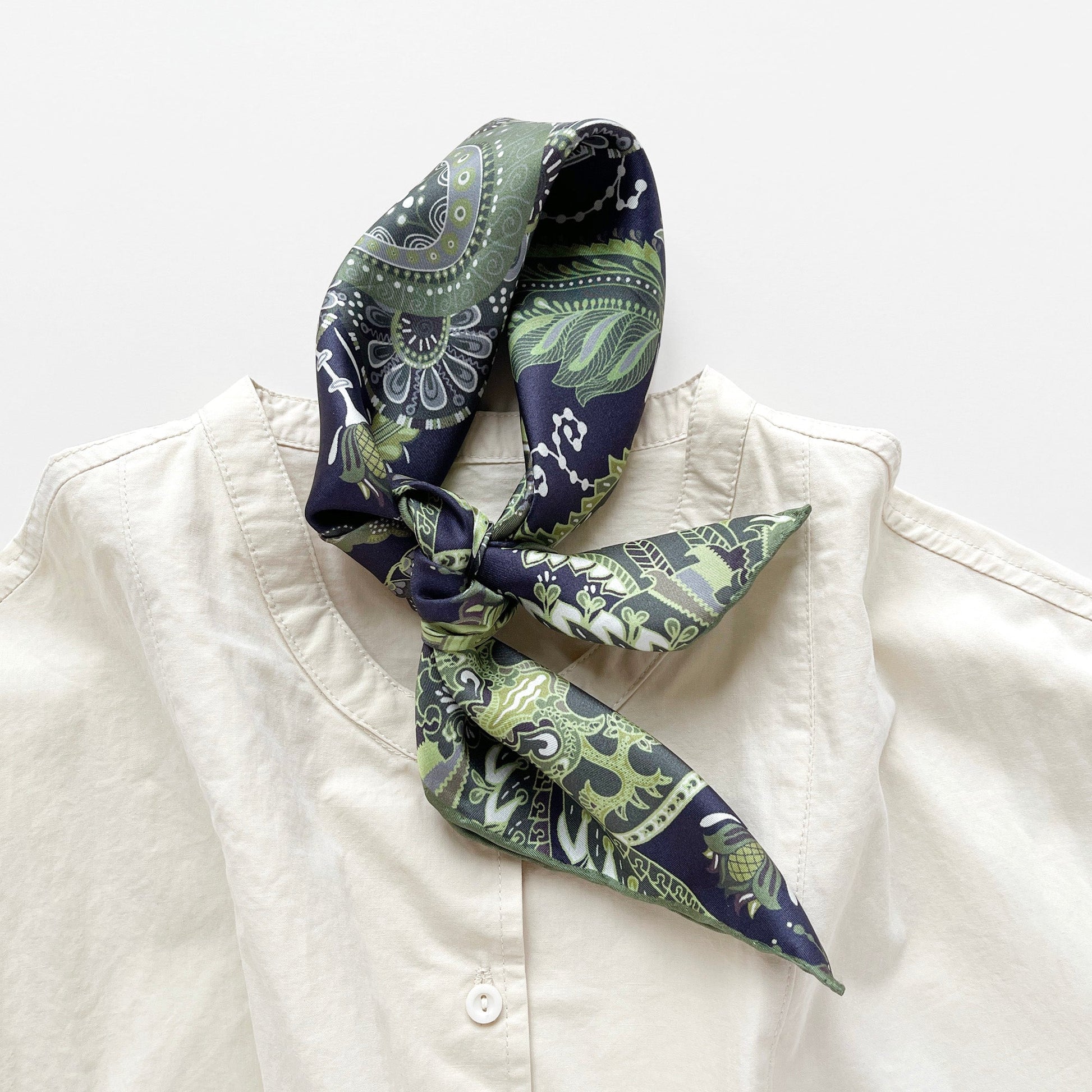 Forest Green Paisley Silk Scarf - 53cm Double-Sided Print Unisex Bandana