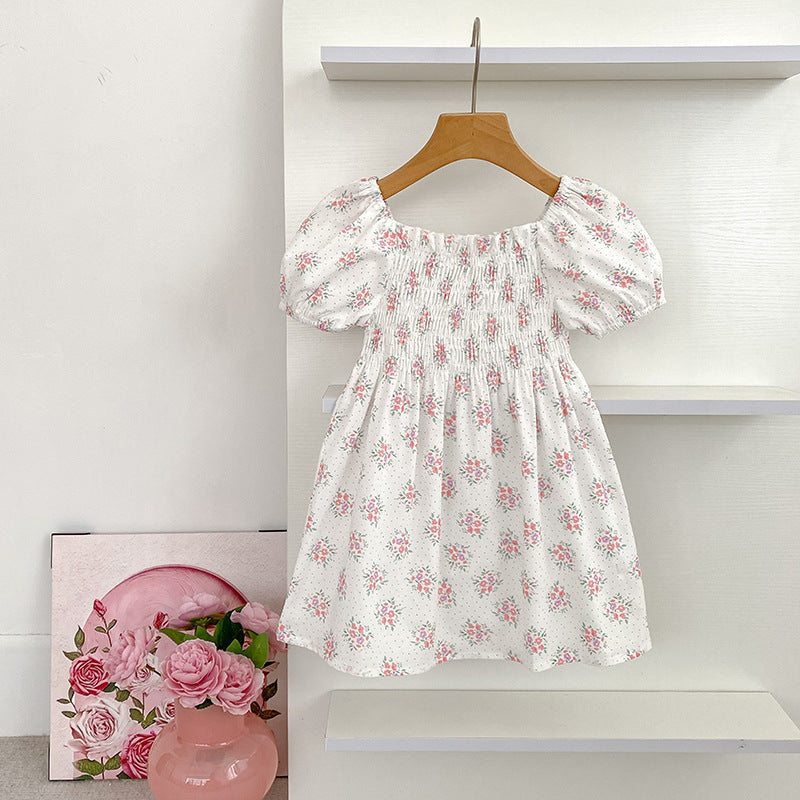 This short-sleeved floral dress features a vibrant and delicate floral pattern that will add a touch of femininity to any little girl's wardrobe. Made with high-quality materials, it offers both comfort and style, making it perfect for any occasion. Upgrade your child's outfit with this beautiful dress.