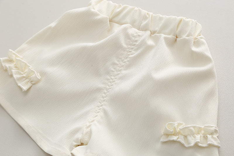 Color: pink radish ruffle sleeve short sleeve two-piece set, green radish ruffle sleeve short sleeve two-piece set