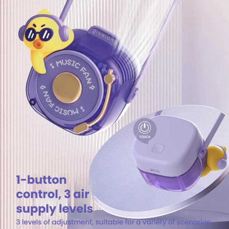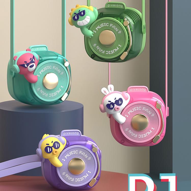 Givelong Cute Cool Pet DJ Lanyard Small Fan USB Rechargeable Compact Portable Bladeless Neck Fan(Cool Bunny)
