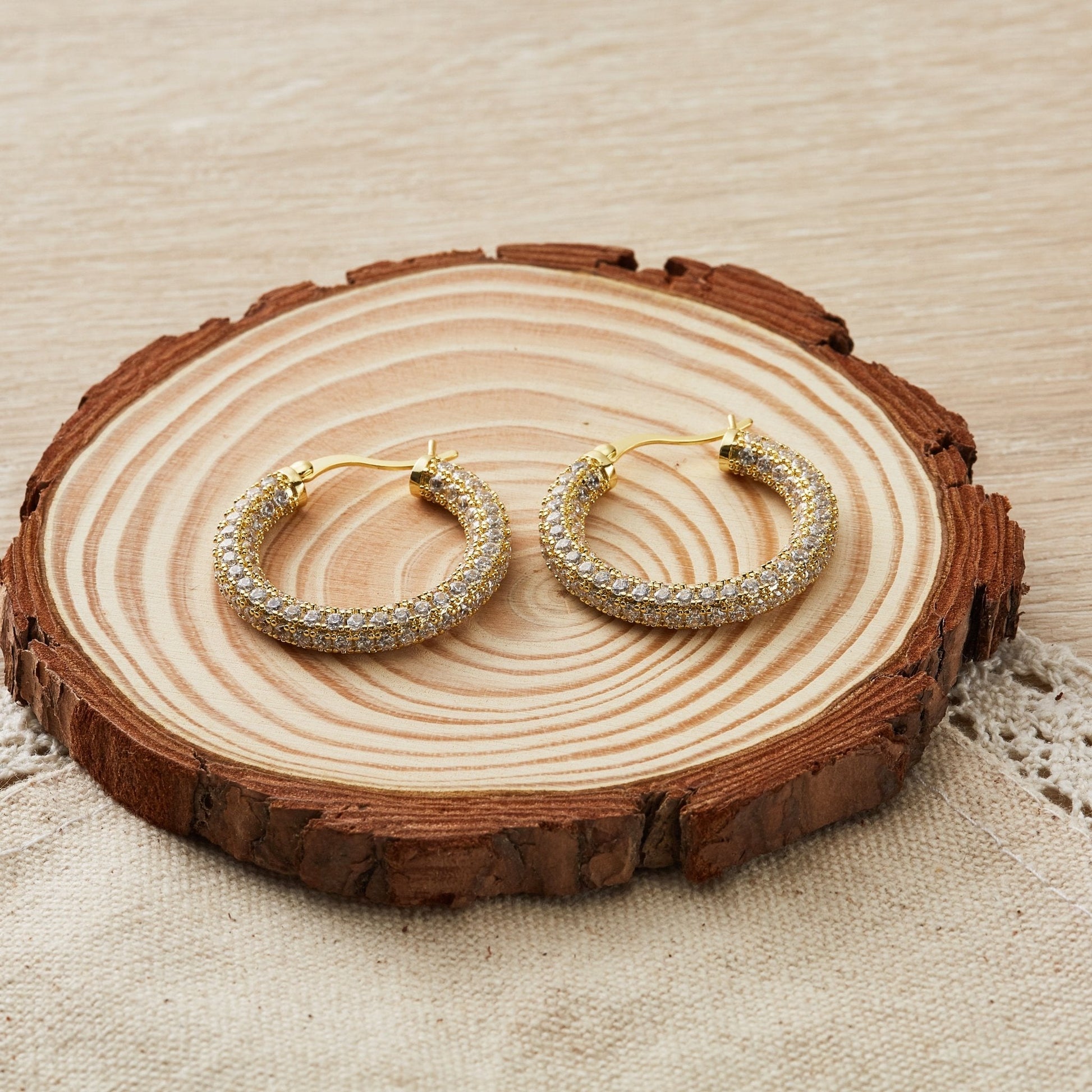 Gold Plated 30mm Pave Hoop Earrings Created with Zircondia® Crystals