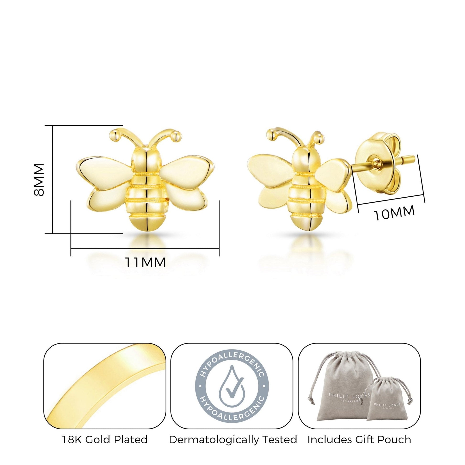 These elegant Philip Jones bumble bee earrings are crafted with gold plated brass alloy, weighing 0.8g. With 8mm (H) x 11mm (W) dimensions, they feature a stylish bumble bee design and are secured with a butterfly closure. Perfect for a sophisticated look.