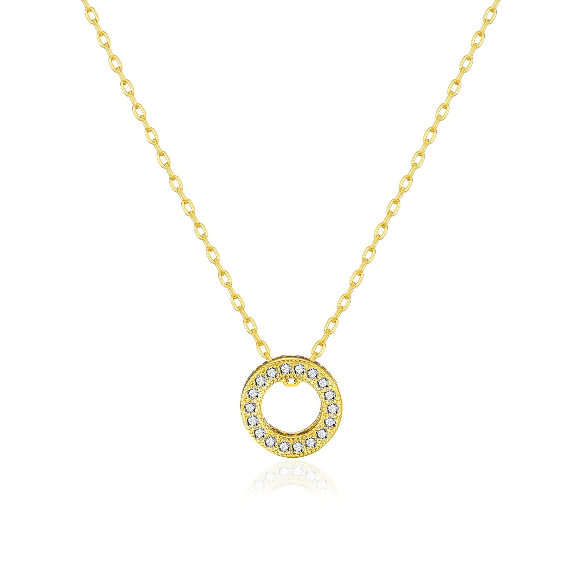 Indulge in the beauty and elegance of our Gold Plated Circle of Life Necklace. Embellished with sparkling Crystals from Zircondia® in a round shape, this hypoallergenic necklace exudes charm and grace. The pendant measures 12mm and comes with a 43cm chain and 5cm extender. Packaged in a lovely gift pouch, it's perfect for any special occasion.