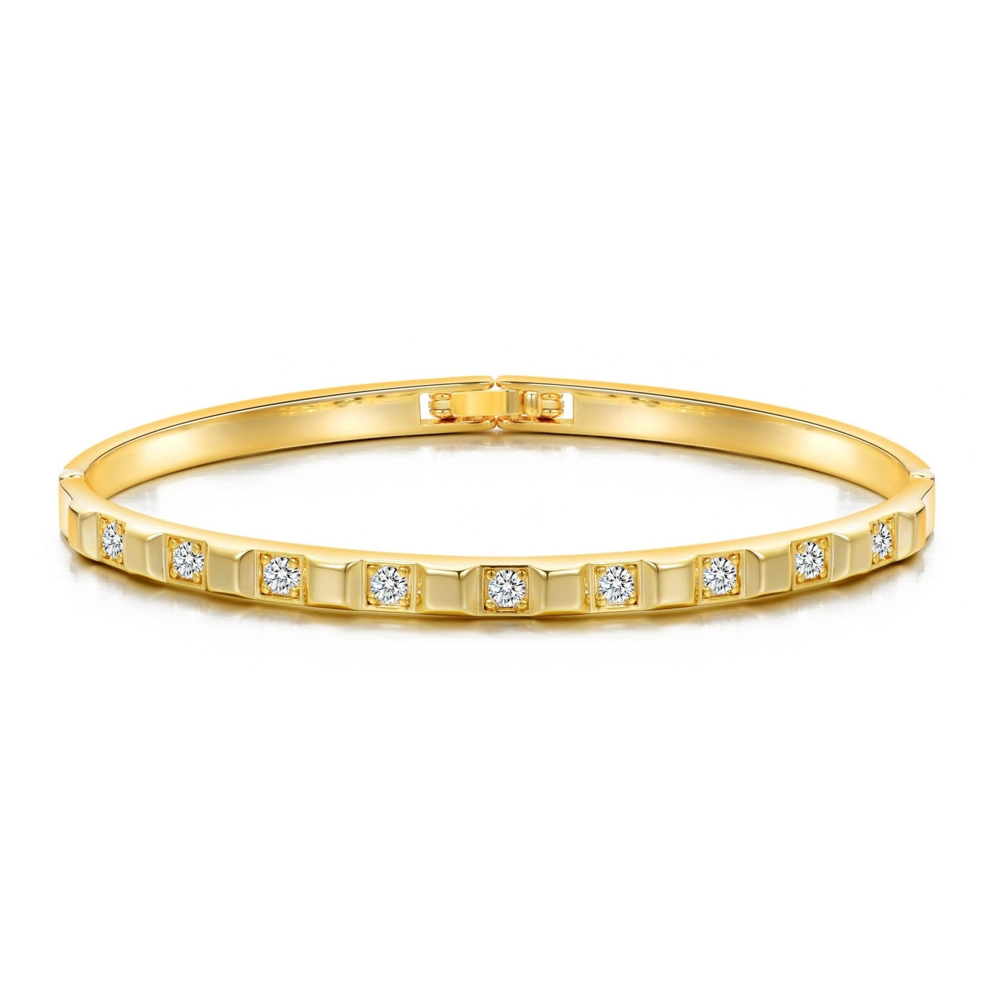 Gold Plated Cubic Bangle Created with Zircondia® Crystals (7 Inch)