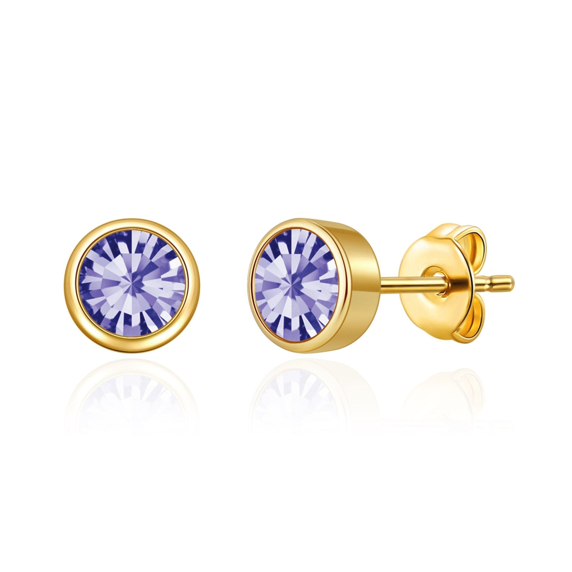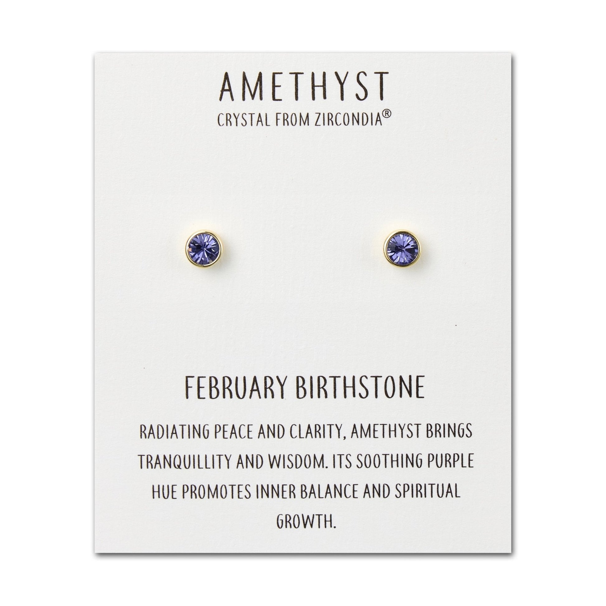 Gold Plated February (Amethyst) Birthstone Earrings Created with Zircondia® Crystals